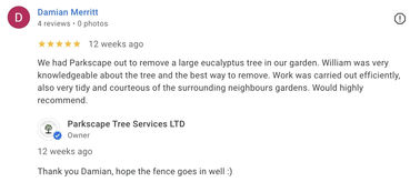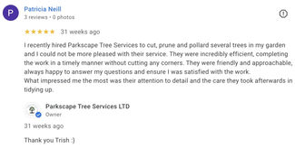 At Parkscape Ltd, our tree removal prices typically start from just £100 for small trees in easy-to-access areas. For large, mature, or hazardous trees—especially those near buildings or power lines—prices can reach into the low thousands, depending on complexity and equipment required.